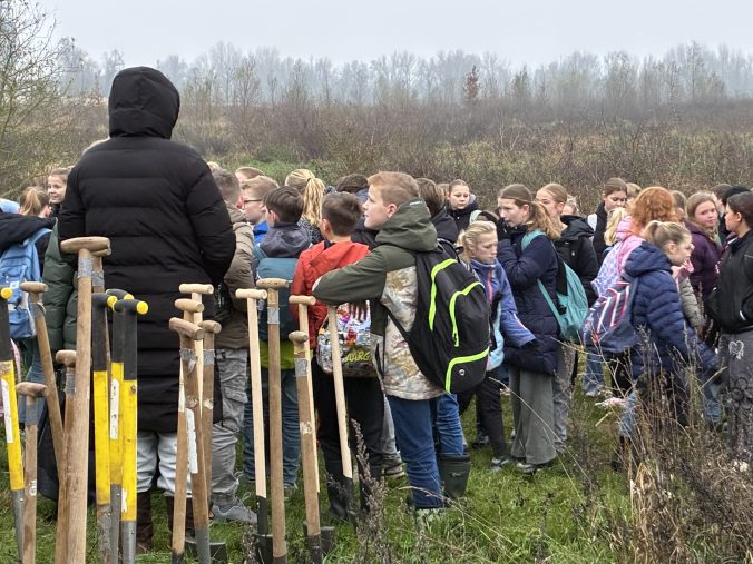 In tweetallen, gewapend met een schop en eigen spierkracht, gingen de jongens en meisjes aan de slag. Niet alleen de bekende struiken zoals meidoorn, sleedoorn en hondsroos met hun venijnige stekels, maar ook typische hardhoutsoorten zoals fladderiep, zomereik, en lindes werden in gemengde groepjes aangeplant. Onder toeziend oog van vrijwilligers van Lingewaard Natuurlijk en medewerkers van K3 Delta en Staatsbosbeheer.